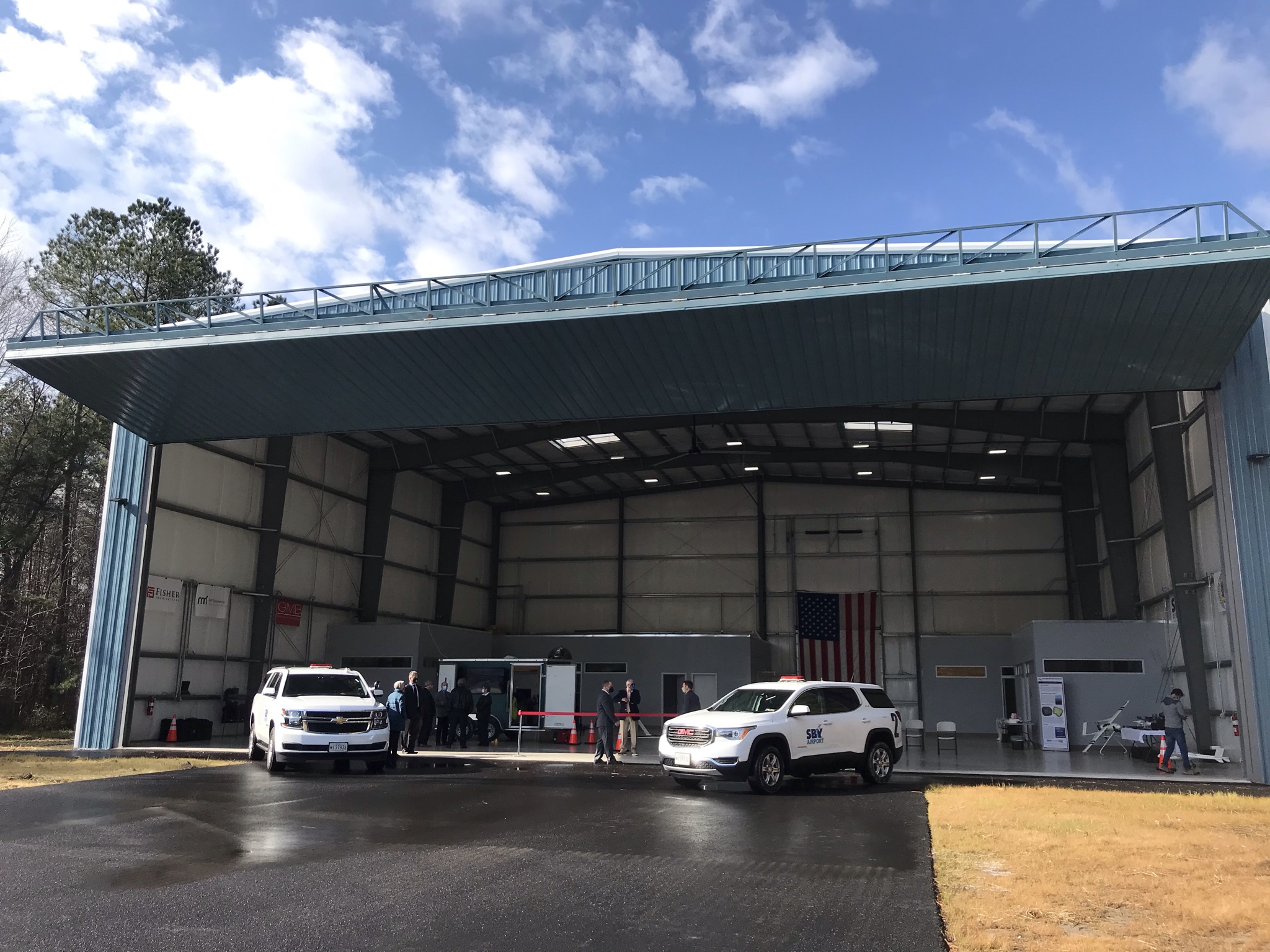 The project faced some key challenges immediately. The site was closely bordered by non-tidal wetlands, had marginal soil profiles at the surface, and had no existing utilities nearby. The building needed to be tall enough to handle much taller aircraft than drones (to be flexible for future jet aircraft), yet needed to minimize the width to fit on the site.
